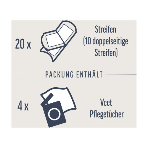 Du hast immer diese kleinen feinen Härchen im Gesicht? Dann sind die Veet Kaltwachsstreifen genau das Richtige für dich! In 4 einfachen Schritten schenken dir die Wachsstreifen bis zu 28 Tage seidig glatte Haut.