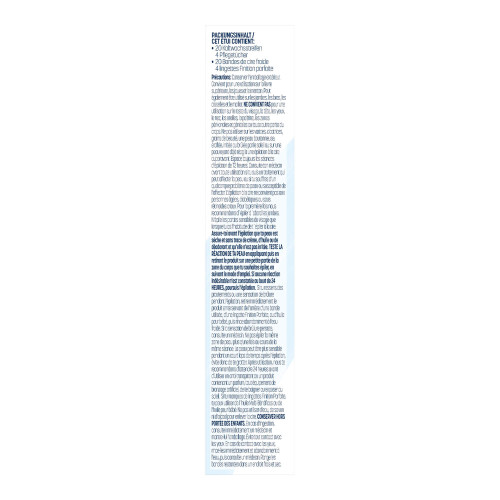 Kaltwachsstreifen: Hydrogenated Styrene/Methyl Styrene/Indene Copolymer, Paraffinum Liquidum, Silica, Polyethylene, Pentaerythrityl Tetra-Di-t-Butyl, Hydroxyhydrocinnamate.