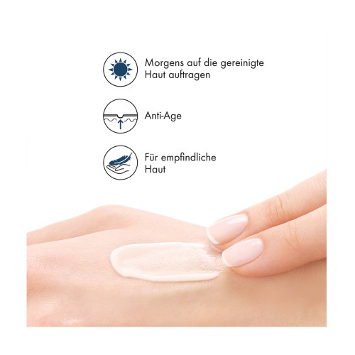 Die NEOVADIOL Tagescreme für trockene Haut nach Bedarf täglich morgens anwenden. Dafür die Creme für reife Haut nach dem Serum auf Gesicht, Hals und Dekolleté auftragen und sanft mit den Fingerspitzen einmassieren. Die Augenpartie aussparen.