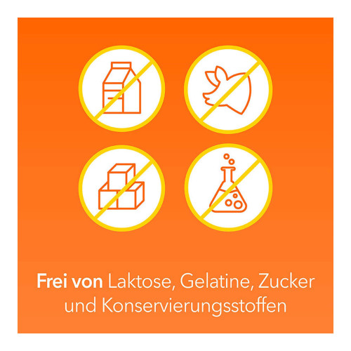 Füllstoff: Sorbit, Pantothensäure, Thiaminnitrat (Vitamin B1), Riboflavin (Vitamin B2), Niacin, Pyridoxinhydrochlorid (Vitamin B6), Trennmittel: Siliziumdioxid, Pfirsicharoma, Folsäure, Biotin, Cyanocobalamin (Vitamin B12).