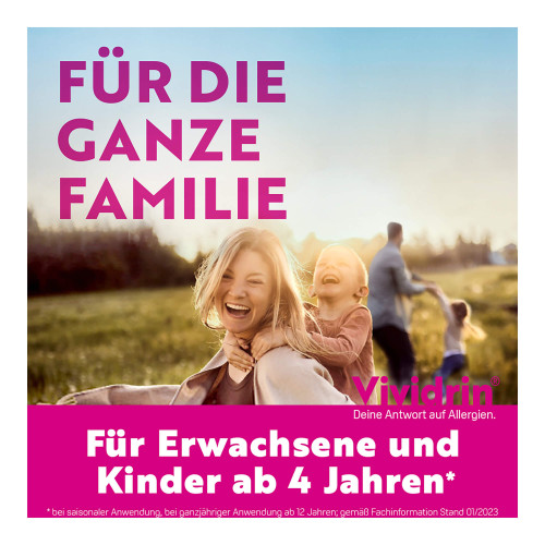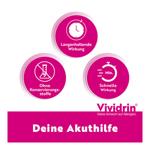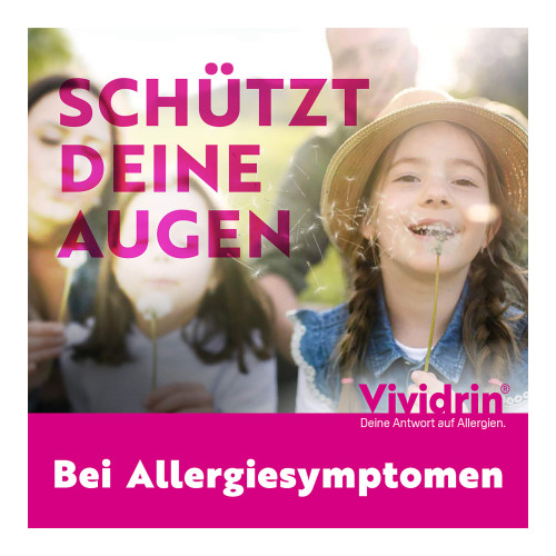 Vividrin Azelastin EDO 0,5 mg/ml Augentropfen. Wirkstoff: Azelastinhydrochlorid. Anwendungsgebiete: Zur Behandlung und Vorbeugung von durch Heuschnupfen bedingten Beschwerden am Auge (saisonale allergische Konjunktivitis) bei Erwachsenen und Kindern ab 4 Jahren. Zur Behandlung von durch Allergien auf Substanzen wie zum Beispiel Hausstaubmilben und Tierhaare bedingten Beschwerden am Auge (nicht-saisonale (perenniale) allergische Konjunktivitis) bei Erwachsenen und Kindern ab 12 Jahren. Warnhinweis: Vividrin Azelastin EDO ist nicht zur Behandlung von Infektionen des Auges geeignet.