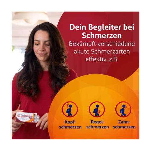 VoltaDexibu Schmerztabletten wird angewendet bei Erwachsenen zur symptomatischen kurzzeitigen Behandlung von akuten leichten bis mäßig starken Schmerzen wie