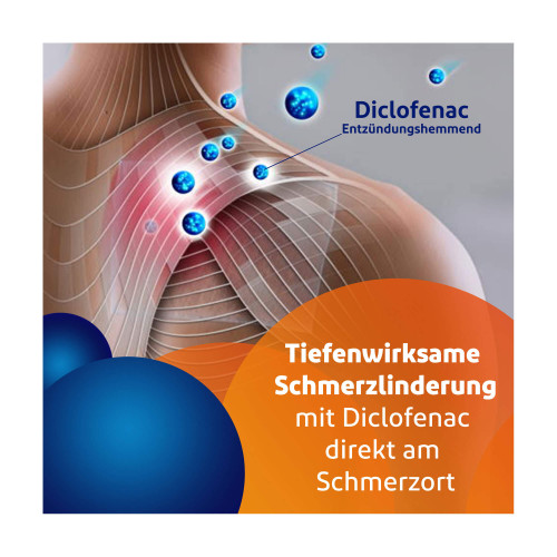 Diclofenac wird durch die Haut in sehr geringem Umfang in den Körper aufgenommen, verglichen zur Wirkstoffkonzentration im Blut nach Einnahme von Diclofenac.