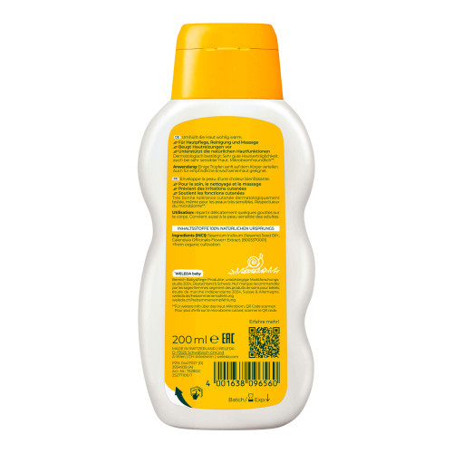 Das unparfümierte Weleda Calendula-Pflegeöl ist ideal für die tägliche Hautpflege und die milde Reinigung im Windelbereich. Es hilft mit einem Auszug aus kontrolliert-biologisch angebauter Calendula, Hautreizungen und Wundwerden vorzubeugen. Durch das enthaltene Sesamöl aus kontrolliert-biologischem Anbau wirkt das Calendula-Pflegeöl wohlig wärmend und ist daher auch sehr gut für die sanfte Babymassage geeignet. Dafür einfach eine kleine Menge Öl auf den Handflächen verteilen und mit kreisenden Bewegungen in die Haut einmassieren.