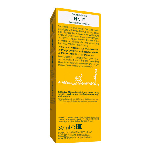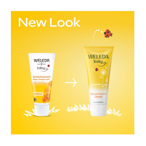 Die Weleda Calendula Wundschutzcreme mit dem zartem Duft aus natürlichen ätherischen Ölen schützt die empfindliche Haut in Babys Windelbereich auf natürliche Weise und beugt dem Wundwerden vor. Mandelöl und ein wertvoller Auszug aus Bio-Calendula und Bio-Kamille beruhigen bei gereizter und geröteter Haut. Zinkoxid schützt zuverlässig vor Nässe. Für Eltern, die sich eine Creme ohne ätherische Öle wünschen, gibt es unsere beliebte Wundschutzcreme nun auch parfümfrei.