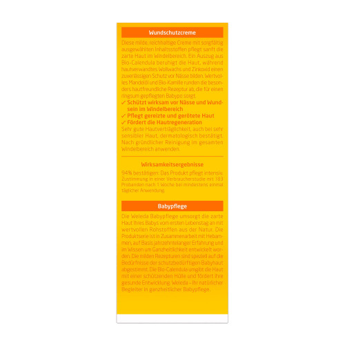 Die Weleda Calendula Wundschutzcreme schützt die empfindliche Haut in Babys Windelbereich auf natürliche Weise und beugt dem Wundwerden vor. Mandelöl und ein wertvoller Auszug aus Bio-Calendula und Bio-Kamille beruhigen bei gereizter und geröteter Haut. Zinkoxid schützt zuverlässig vor Nässe.