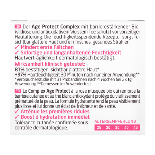 Die Weleda Glättende Tagespflege mindert erste Fältchen, versorgt die Haut mit sofortiger Feuchtigkeit und stärkt ihre Barriere. Der Age-Protect-Complex mit Bio-Wildrosenöl und antioxidativem Weißem Tee schützt wirksam vor den ersten Anzeichen der Hautalterung.