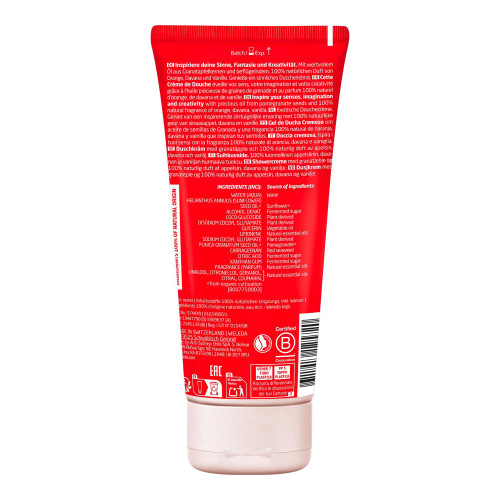Inspiriere deine Sinne, Fantasie und Kreativität. Kostbares Öl aus Granatapfelsamen und 100% natürlicher Duft von Orange, Davana, Vanille. Genieße ein sinnliches Duscherlebnis.