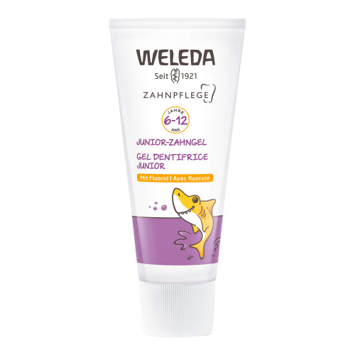 Das Junior-Zahngel mit Fluorid hat Weleda speziell für die Zahnpflege bei Kindern ab 6 Jahren entwickelt. Sie mögen den angenehmen Geschmack der natürlichen ätherischen Öle. Der mineralische Putzkörper reinigt die Zähne sanft aber gründlich, während der Extrakt aus Calendulablüten das Zahnfleisch unterstützt, gesund zu bleiben. Das Zahngel enthält keine Pfefferminze und ist deshalb auch während einer homöopathischen Behandlung geeignet.