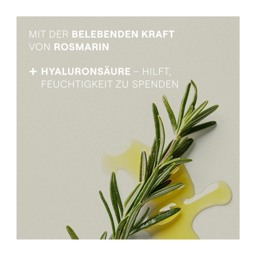 - Pflanzenbasierte Rezeptur mit Bio-Rosmarinöl und Phyto-Hyaluronsäure.
