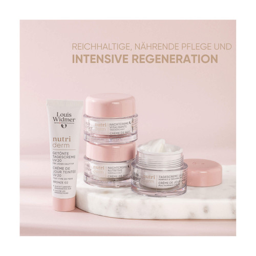Bei extrem trockener, fettarmer Haut kann die nutriderm Nachtcreme Vitalisante auch als Tagespflege angewendet werden. Diese Creme dringt sofort ein und hinterlässt keinen Fettfilm.