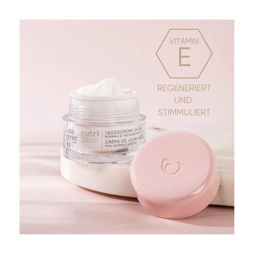 Die nutriderm Tagescreme UV 20 wird morgens nach der gründlichen Reinigung der Haut aufgetragen. Augenpartie aussparen.