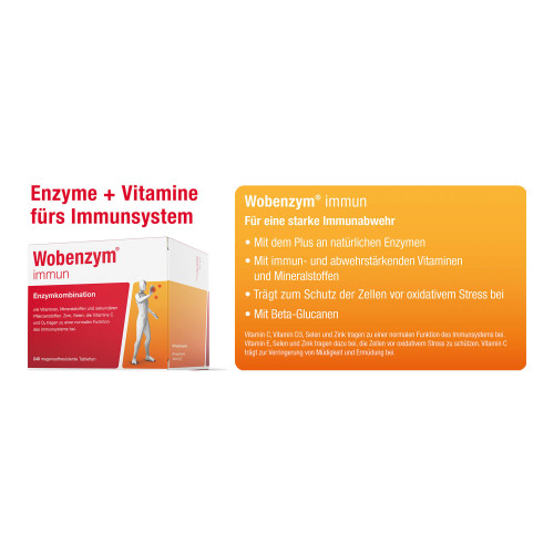 Damit die Enzyme optimal aufgenommen werden können, ist es erforderlich, dass Wobenzym immun außerhalb der üblichen Mahlzeiten verzehrt wird. Es hat sich bewährt, einen Abstand von mindestens 30 Minuten vor einer Mahlzeit oder 90 Minuten nach einer Mahlzeit einzuhalten.