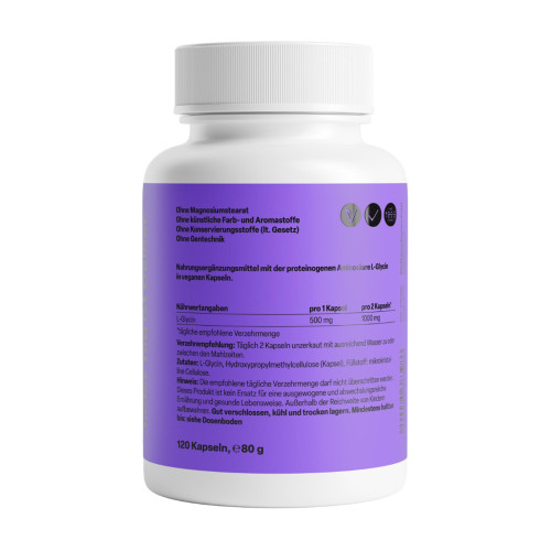 Mit der proteinogenen Aminosäure Glycin in vegetarischen Kapseln.