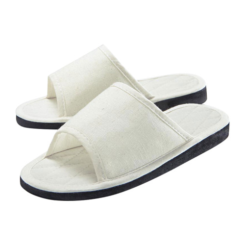 Der breite Riemen setzt an der Zehenreihe an und schließt am oberen Fußrücken ab. Die hellen Zimtlatschen sind komplett mit feiner Baumwolle verarbeitet. Überschüssige Feuchtigkeit wird von dem Baumwollüberzug aufgenommen.