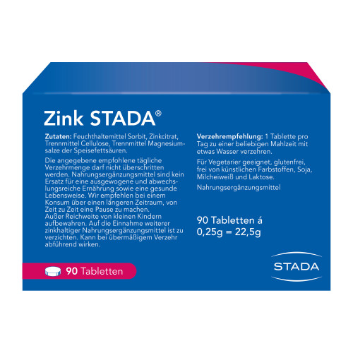 Zusammensetzung pro Tablette: 25 mg (250 %*) Zink